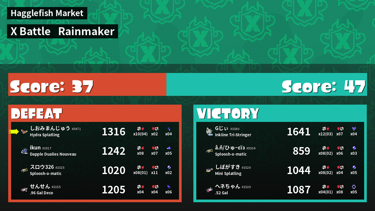 | Mode | Rainmaker - X Battle | ||