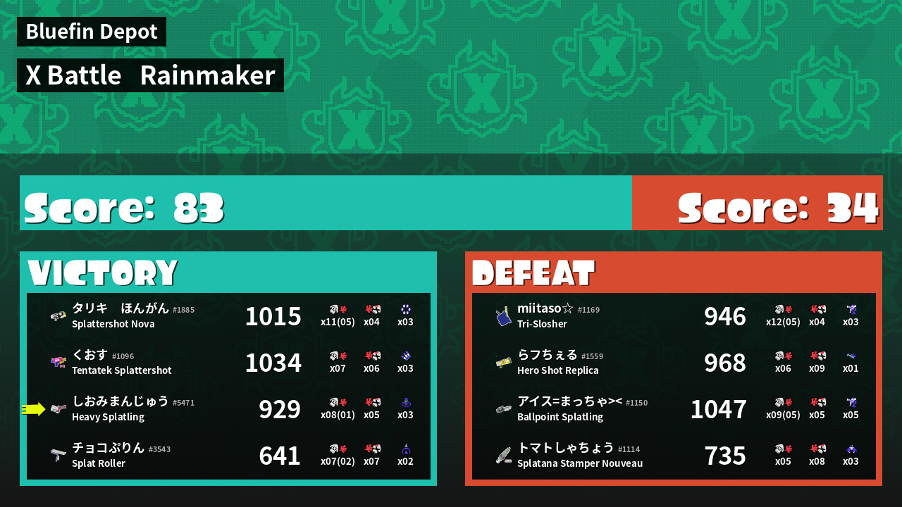 | Medals | #1 Enemy Splatter #1 Rainmaker Stopper #1 Wave Breaker User | ||