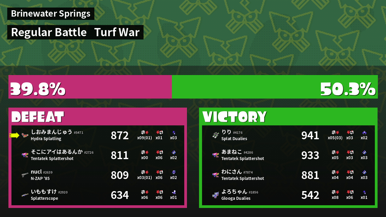 | Medals | #1 Overall Splatter #1 Turf Inker #1 Enemy Splatter | ||