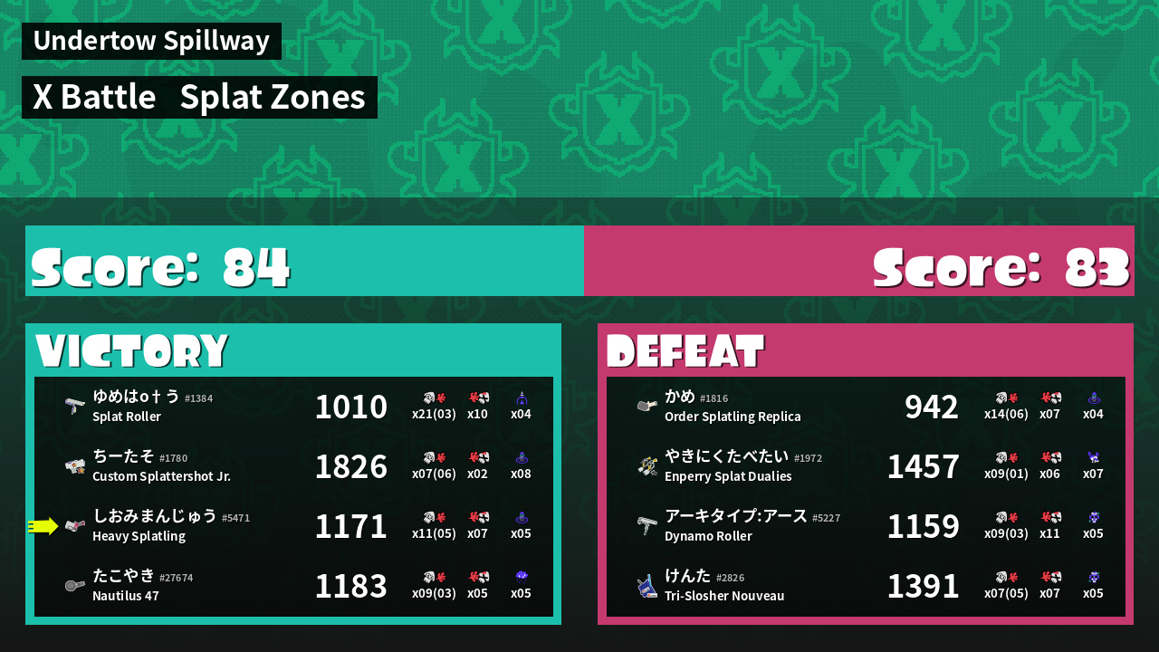| Mode | Splat Zones - X Battle | ||