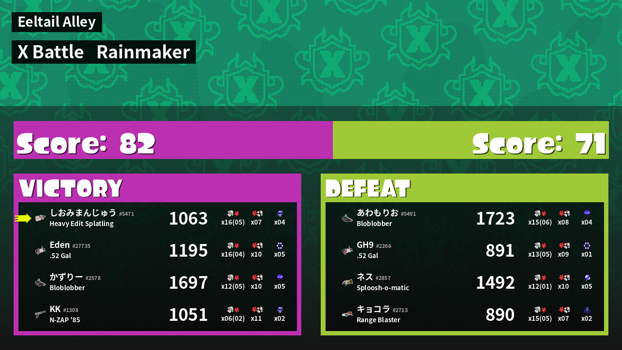 | Medals | #1 Overall Splatter #1 Super Jump Spot #1 Splat Assister | ||