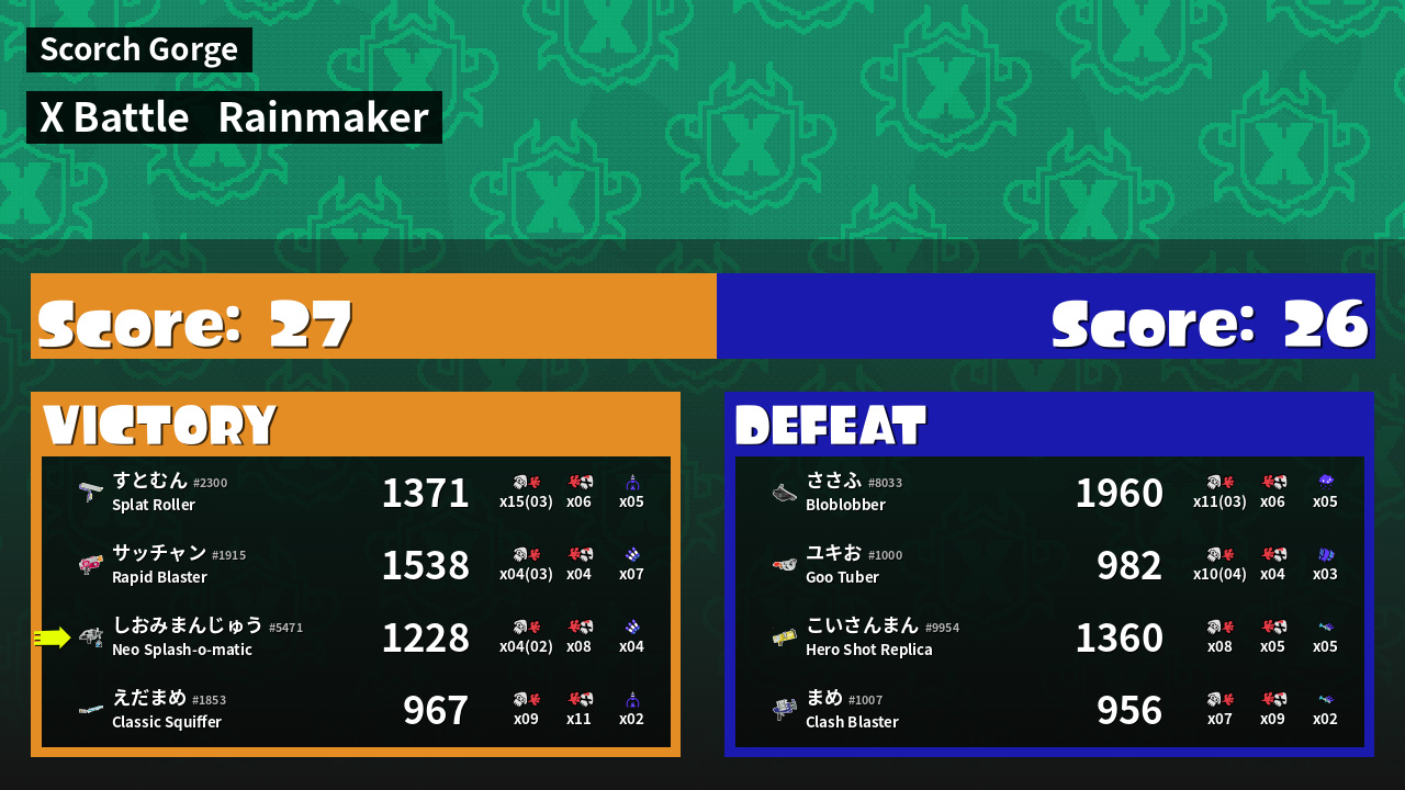 | Mode | Rainmaker - X Battle | ||