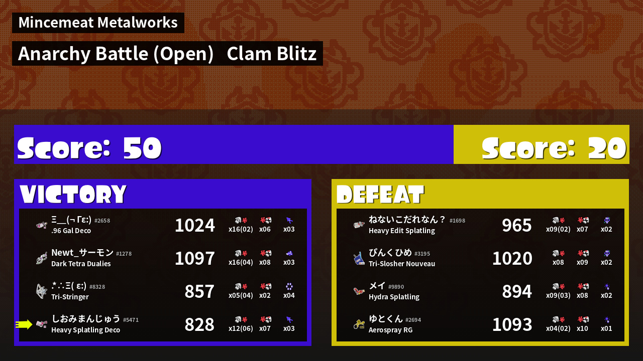 | Mode | Clam Blitz - Anarchy Battle (Open) | ||