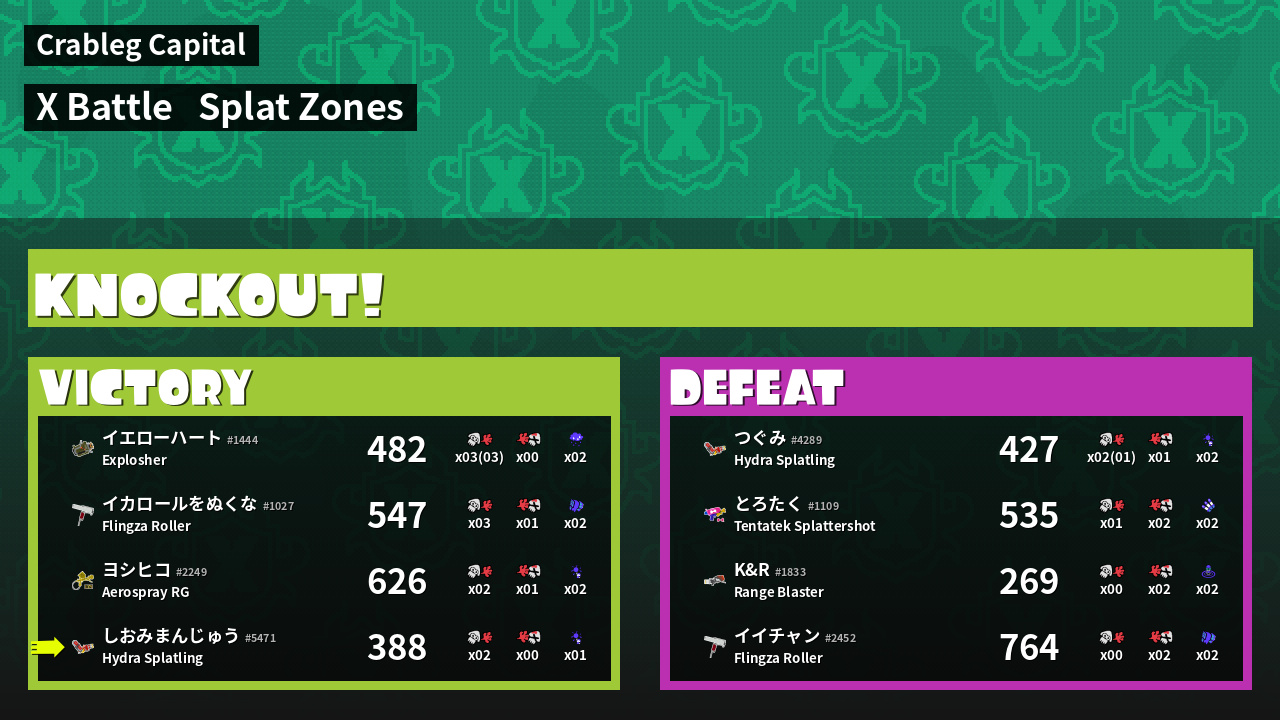 | Mode | Splat Zones - X Battle | ||