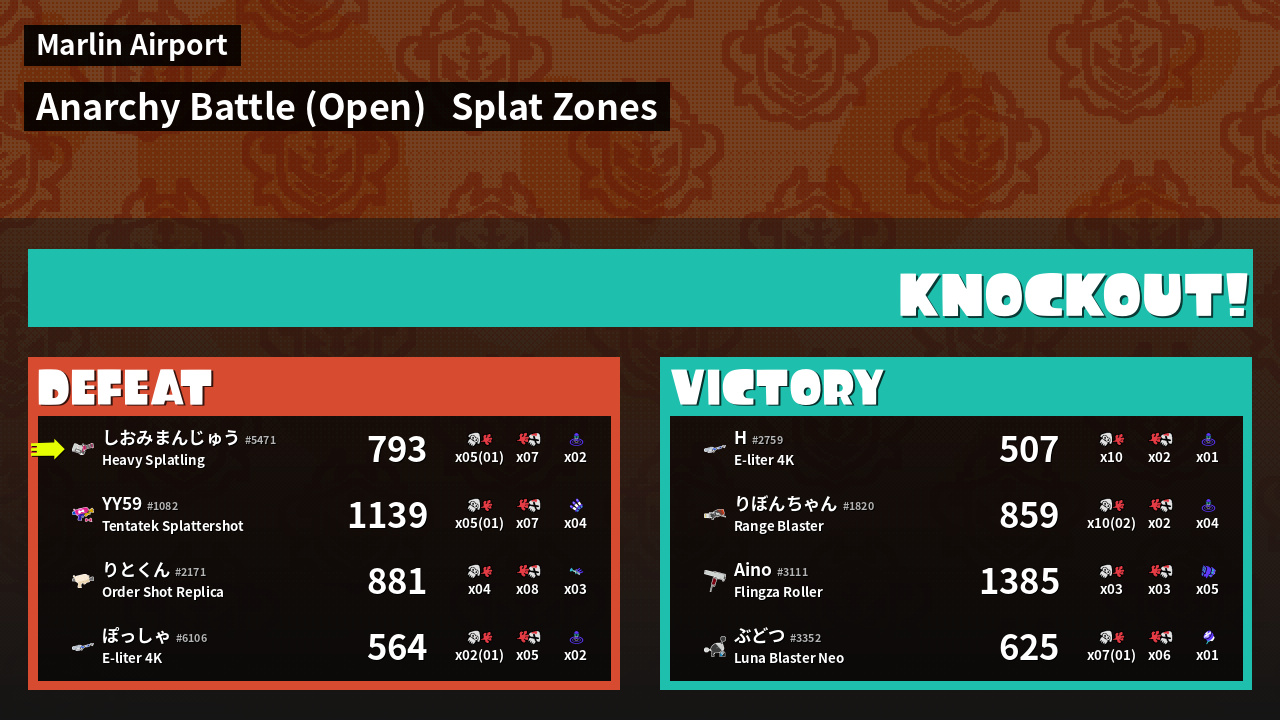 | Mode | Splat Zones - Anarchy Battle (Open) | ||