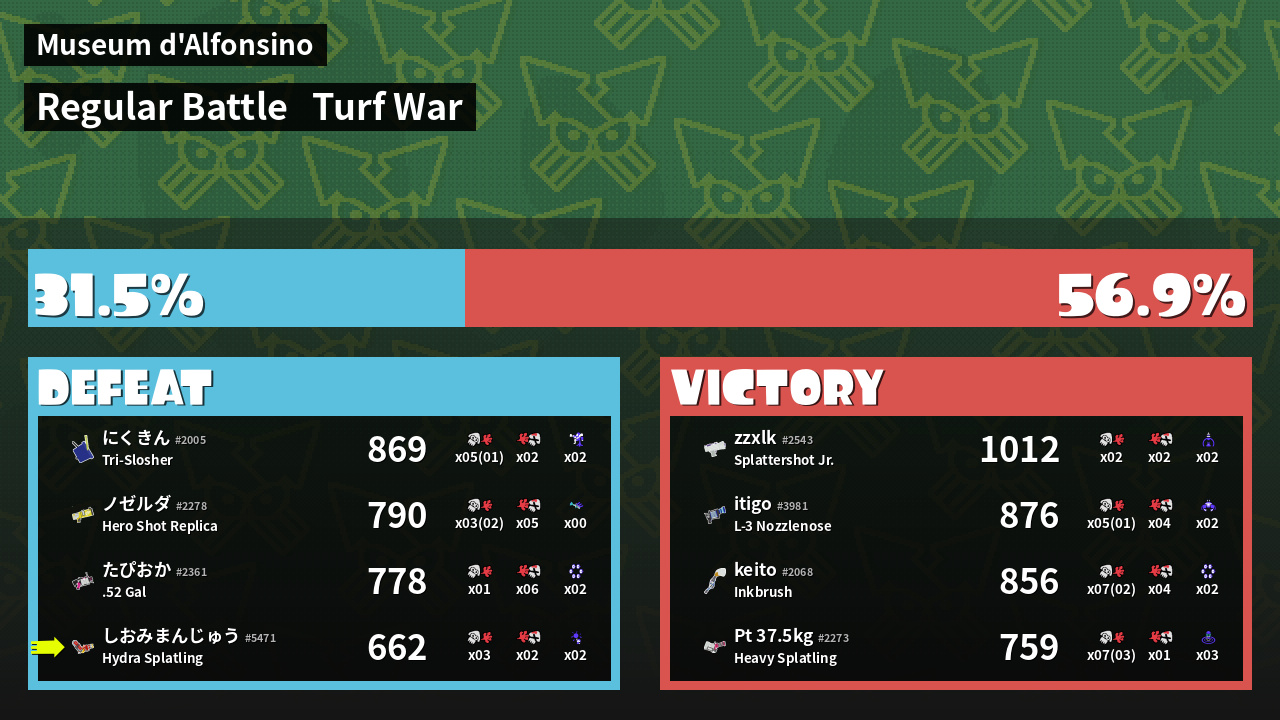 | Mode | Turf War - Regular Battle | ||