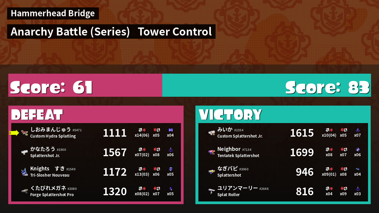 | Mode | Tower Control - Anarchy Battle (Series) | ||