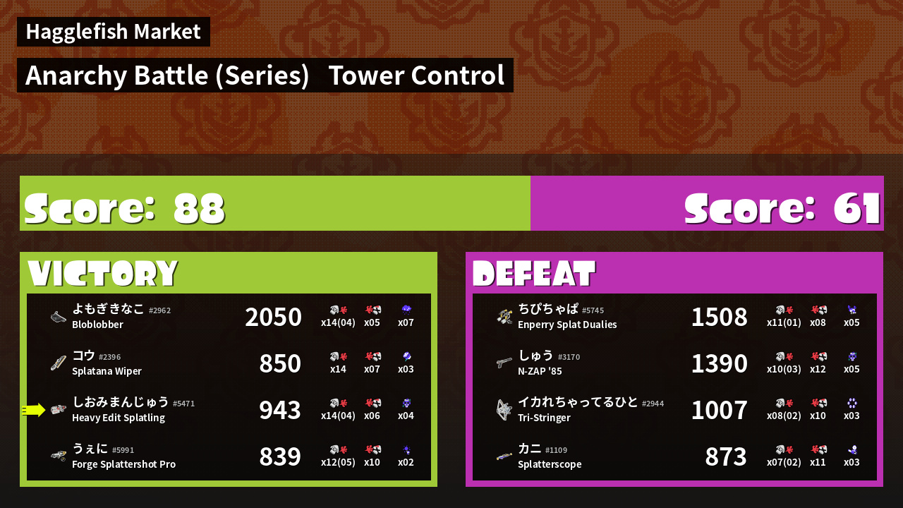 | Weapon | Heavy Edit Splatling ( Curling Bomb / Tacticooler) | ||