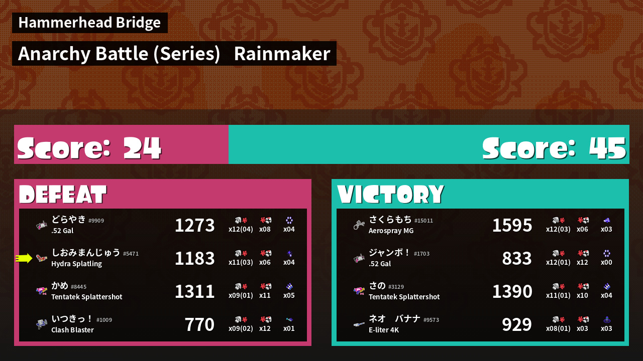 | Mode | Rainmaker - Anarchy Battle (Series) | ||