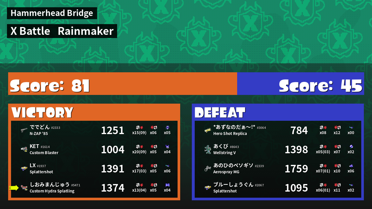 | Weapon | Custom Hydra Splatling ( Ink Mine / Splattercolor Screen) | ||