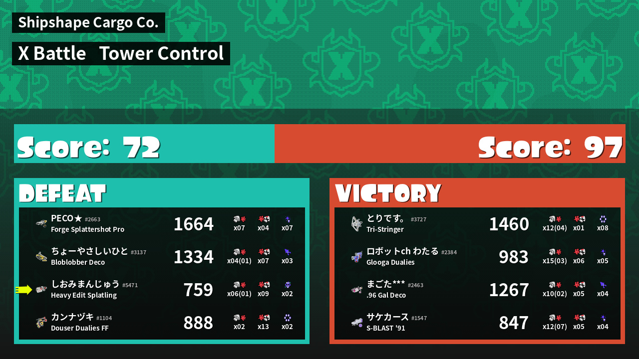 | Medals | #1 Super Jump Spot #1 Splat Assister #1 Tower Stopper | ||