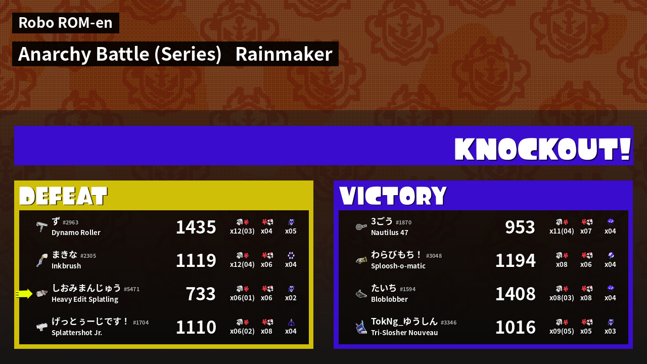 | Weapon | Heavy Edit Splatling ( Curling Bomb / Tacticooler) | ||