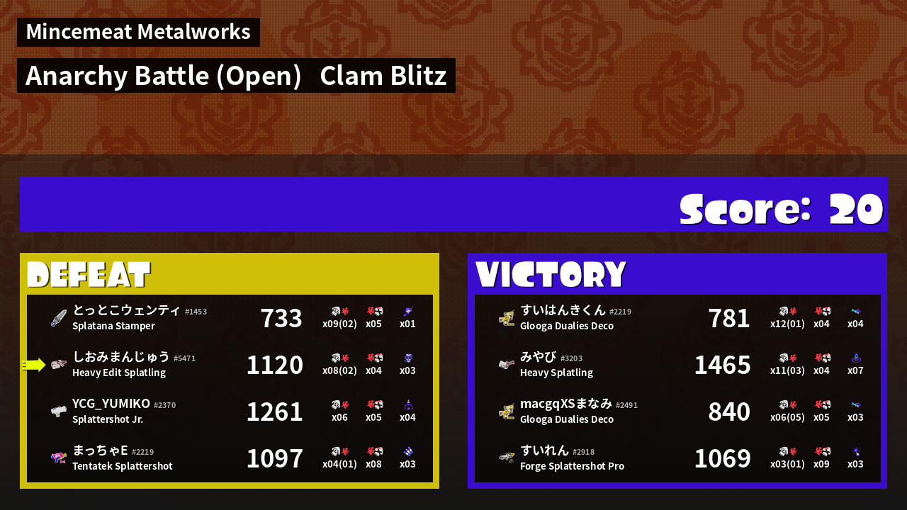 | Mode | Clam Blitz - Anarchy Battle (Open) | ||
