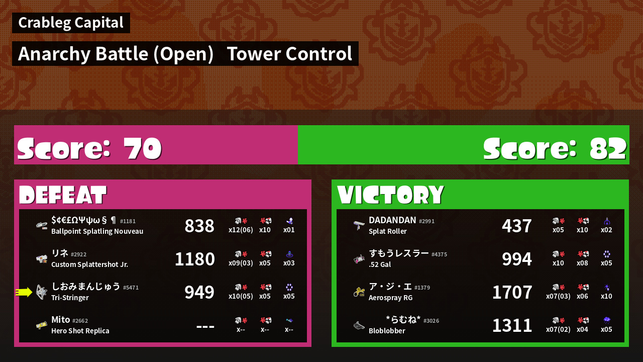 | Mode | Tower Control - Anarchy Battle (Open) | ||
