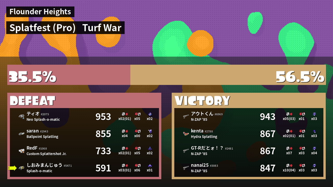 | Medals | #1 Splat Assister #1 Ground Traveler #2 Overall Splatter | ||