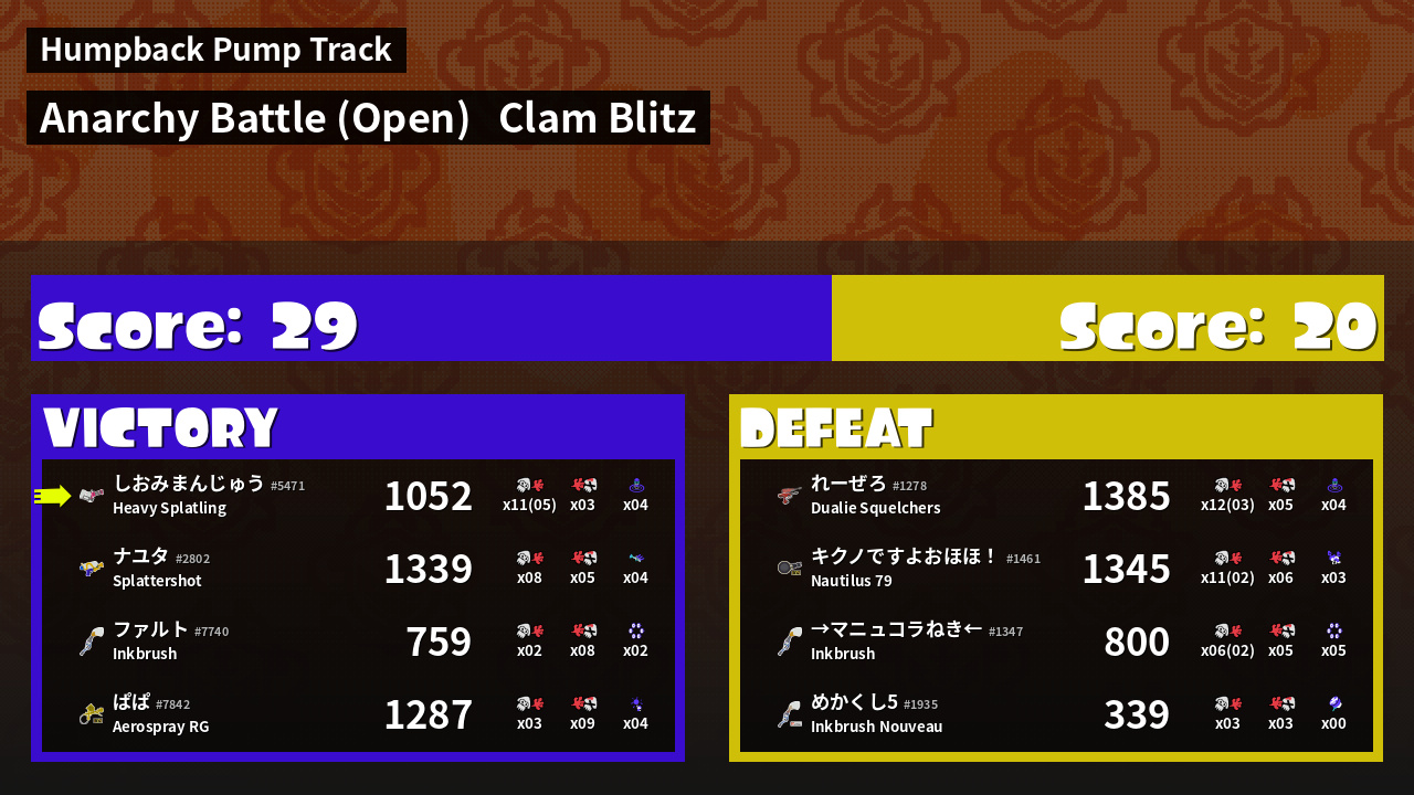 | Mode | Clam Blitz - Anarchy Battle (Open) | ||