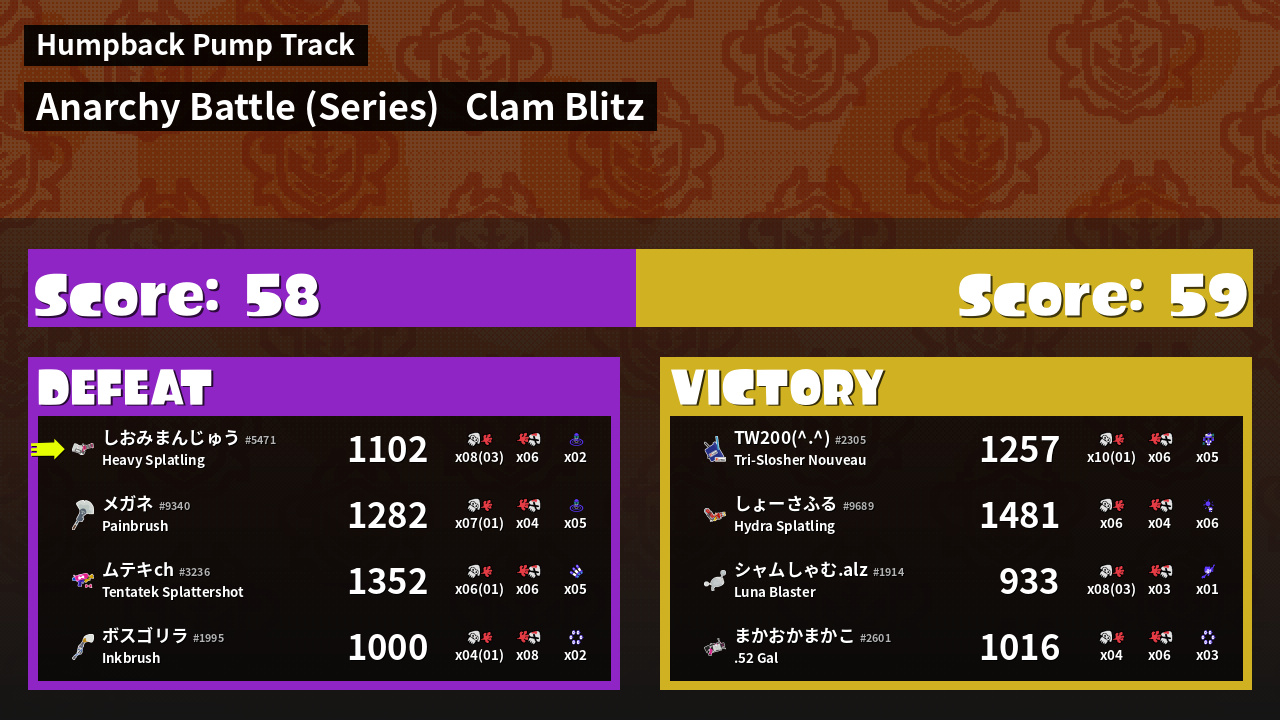 | Mode | Clam Blitz - Anarchy Battle (Series) | ||