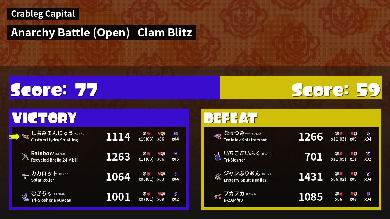 | Mode | Clam Blitz - Anarchy Battle (Open) | ||