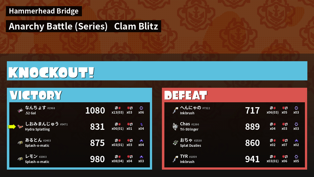| Mode | Clam Blitz - Anarchy Battle (Series) | ||
