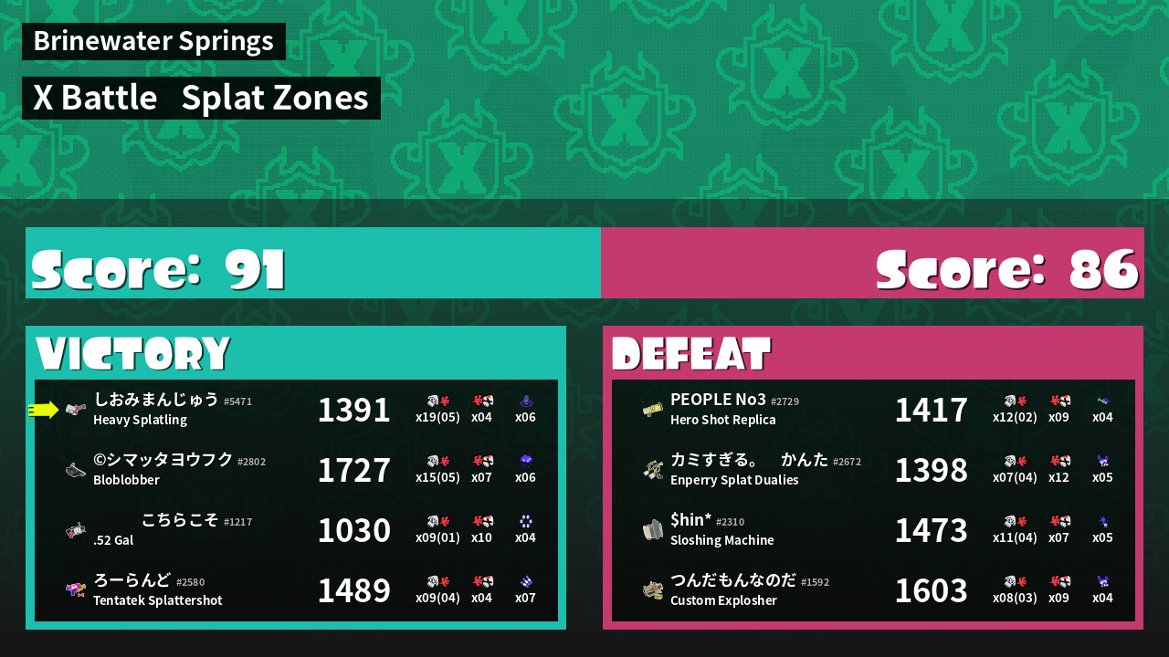 | Medals | #1 Overall Splatter #1 Splat Zone Inker #1 Splat Zone Guard | ||