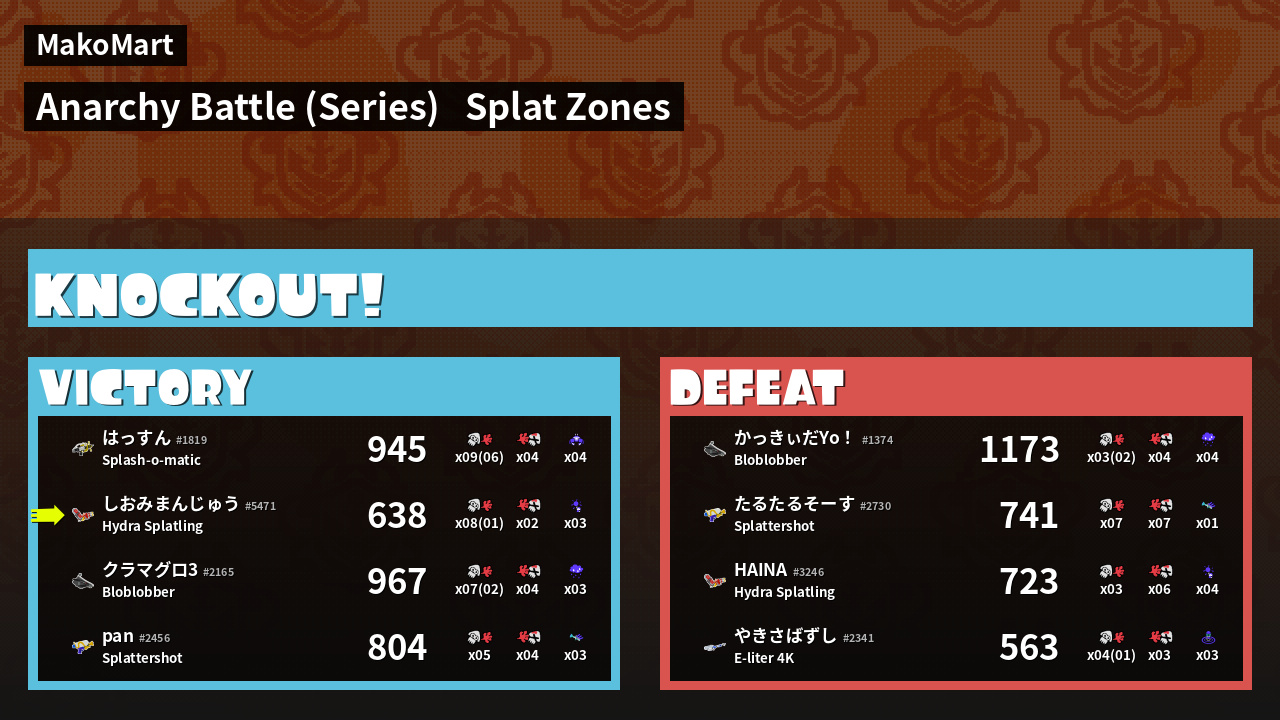 | Mode | Splat Zones - Anarchy Battle (Series) | ||