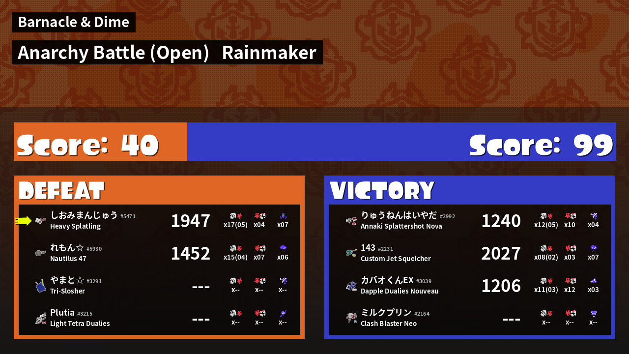 | Mode | Rainmaker - Anarchy Battle (Open) | ||