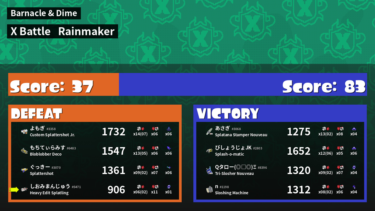 | Mode | Rainmaker - X Battle | ||