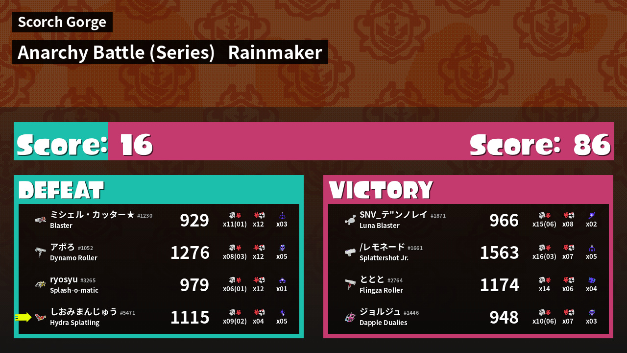 | Medals | #1 Super Jump Spot #1 Damage Taker #1 Ink Consumer | ||