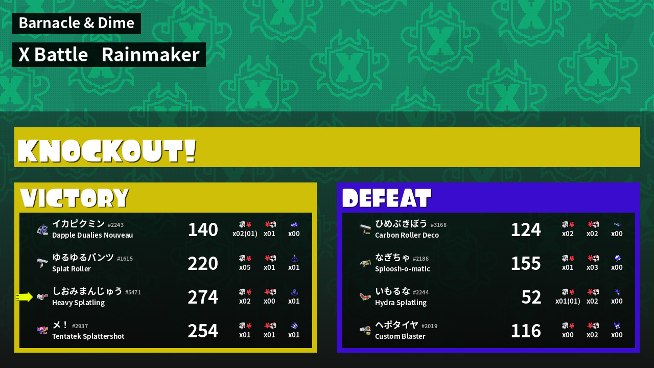 | Weapon | Heavy Splatling ( Sprinkler / Wave Breaker) | ||