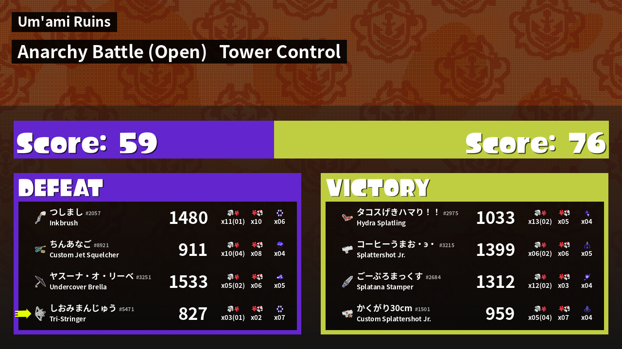 | Mode | Tower Control - Anarchy Battle (Open) | ||