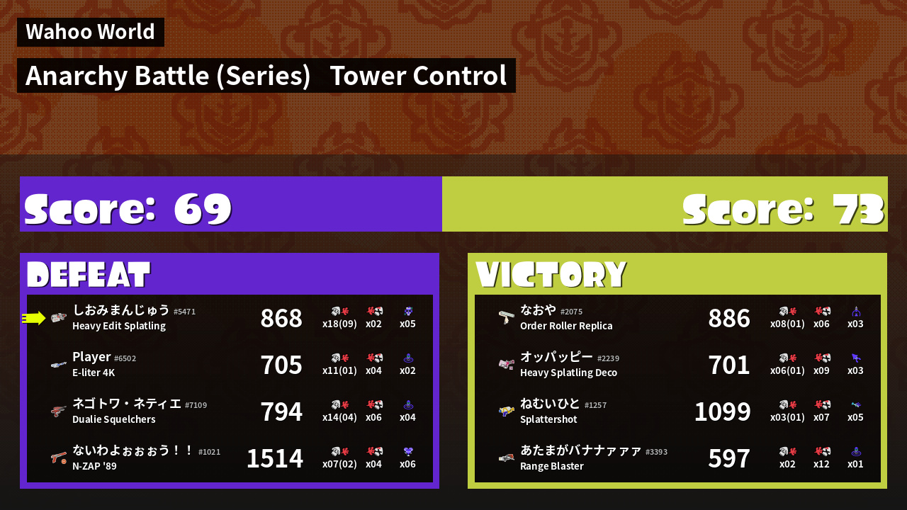 | Mode | Tower Control - Anarchy Battle (Series) | ||