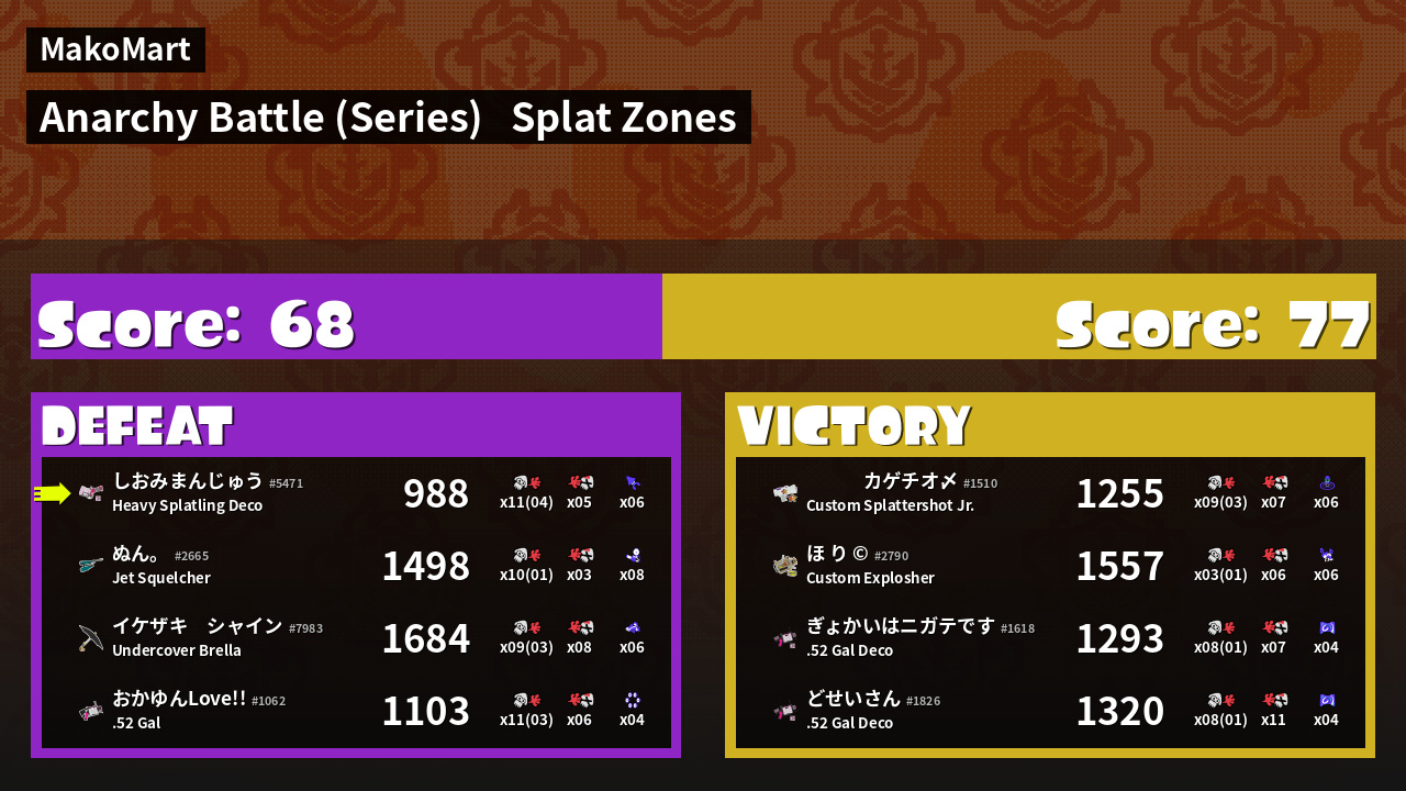 | Mode | Splat Zones - Anarchy Battle (Series) | ||