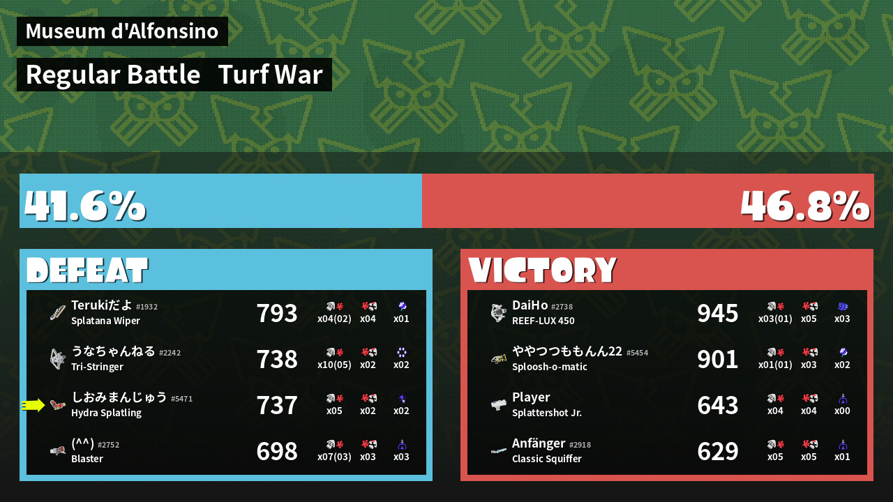 | Mode | Turf War - Regular Battle | ||