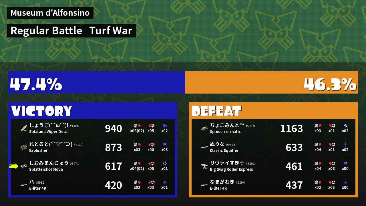| Mode | Turf War - Regular Battle | ||