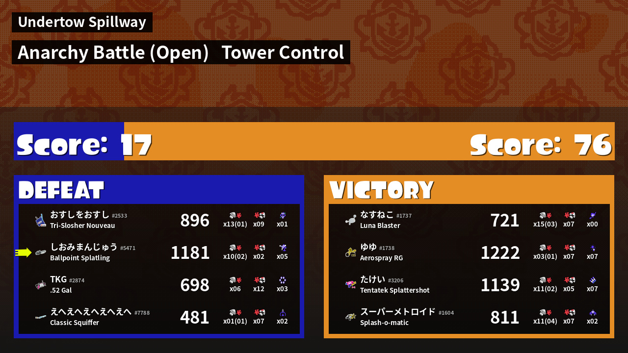| Mode | Tower Control - Anarchy Battle (Open) | ||