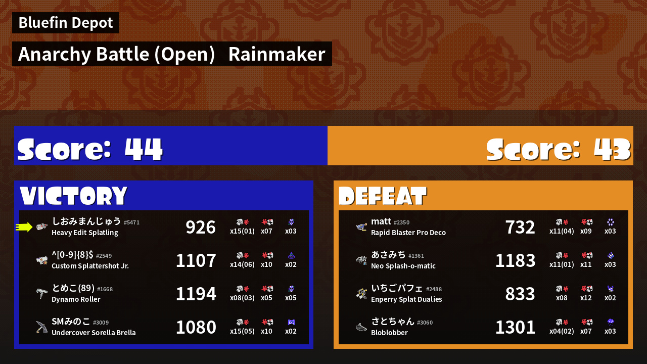 | Mode | Rainmaker - Anarchy Battle (Open) | ||