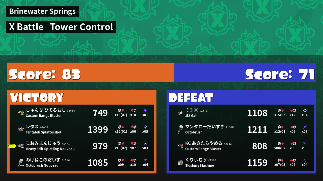 | Mode | Tower Control - X Battle | ||
