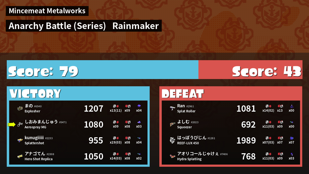 | Mode | Rainmaker - Anarchy Battle (Series) | ||||