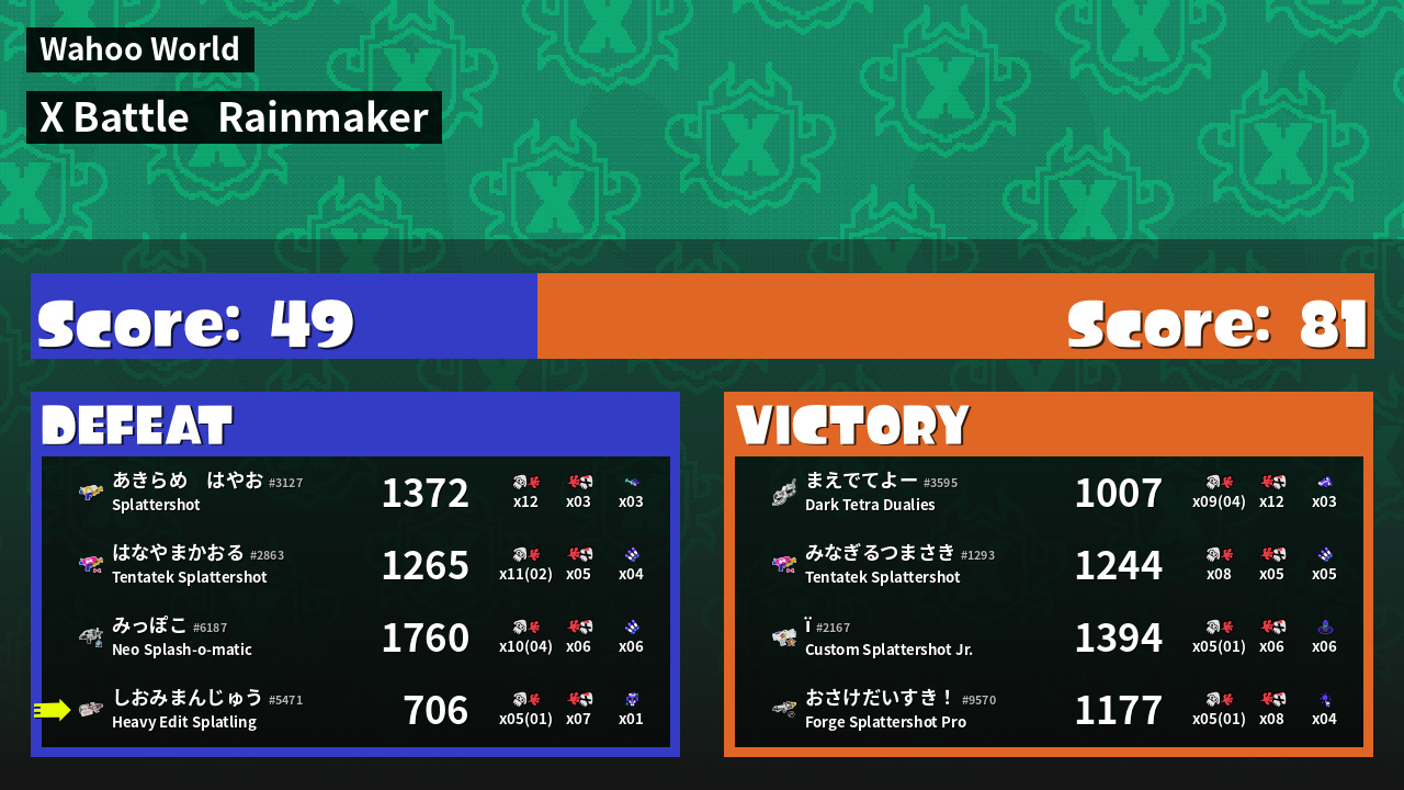 | Weapon | Heavy Edit Splatling ( Curling Bomb / Tacticooler) | ||