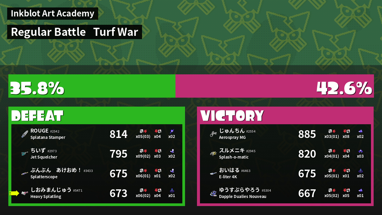 | Medals | #1 Enemy-Base Inker #2 Overall Splatter #2 Super Jump Spot | ||