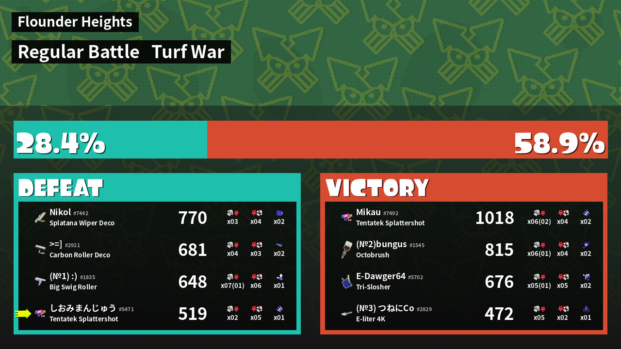 | Mode | Turf War - Regular Battle | ||