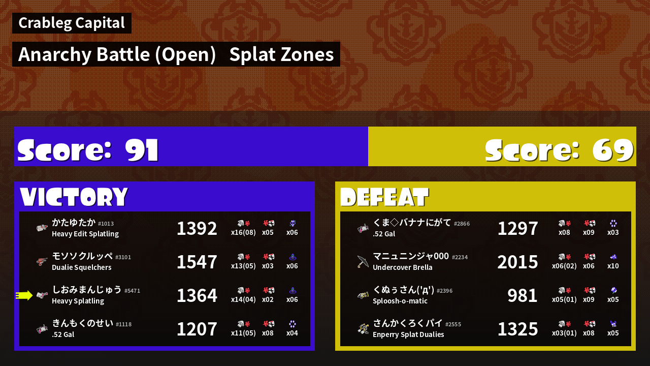 | Mode | Splat Zones - Anarchy Battle (Open) | ||