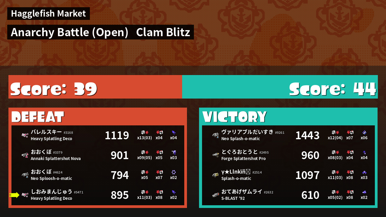 | Mode | Clam Blitz - Anarchy Battle (Open) | ||