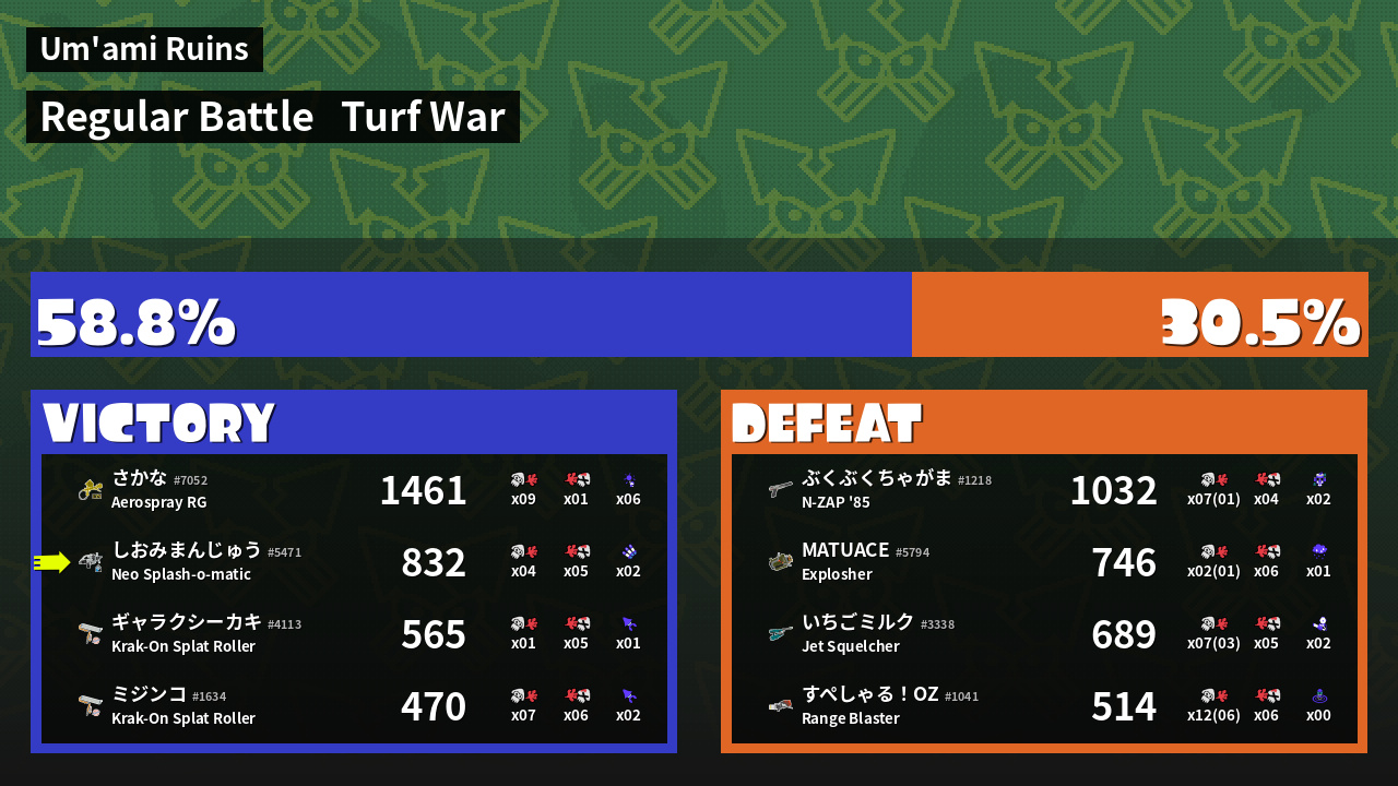 | Mode | Turf War - Regular Battle | ||
