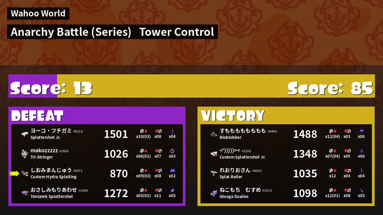 | Mode | Tower Control - Anarchy Battle (Series) | ||