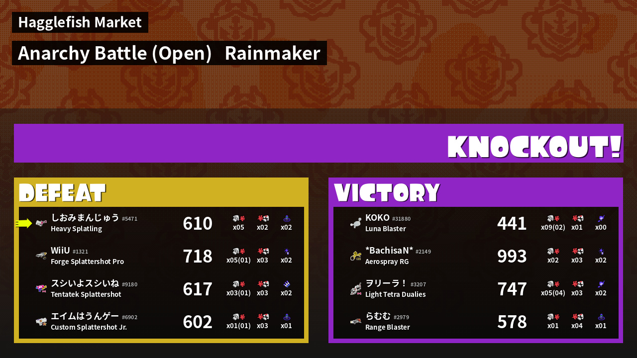 | Mode | Rainmaker - Anarchy Battle (Open) | ||