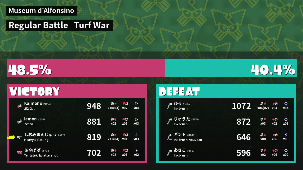 | Mode |    Turf War -   Regular Battle | ||