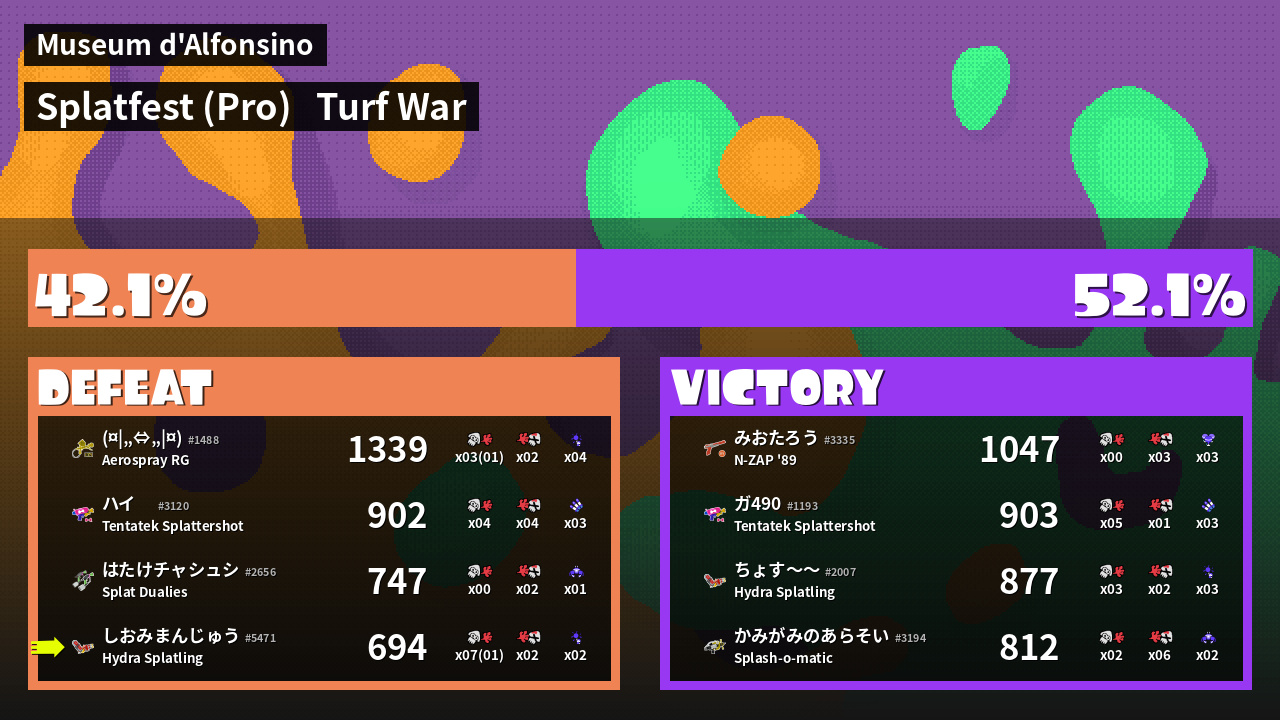 | Medals | #1 Overall Splatter #1 Enemy Splatter #1 Splat Assister | ||