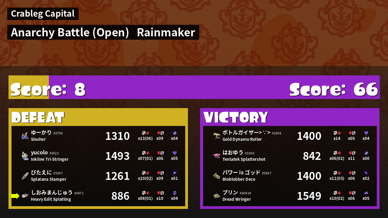 | Mode | Rainmaker - Anarchy Battle (Open) | ||