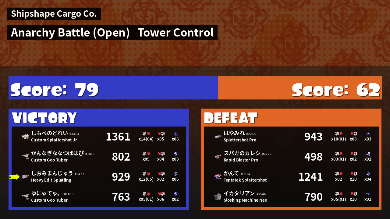 | Mode | Tower Control - Anarchy Battle (Open) | ||